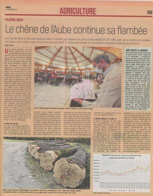 Découvrez le dernier article paru ce jour dans l'Est Eclair sur notre vente de bois.