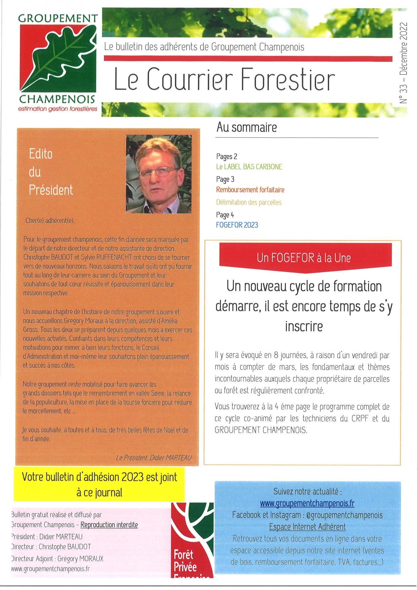 Il sera accompagné du nouveau numéro du Courrier Forestier. Ce numéro est consultable sur votre espace personnel.